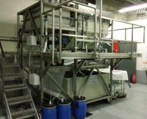 Innovative methods are continuously required in water purification of a wide range of wastewater pollutants especially in case of difficult approach. Electrocoagulation system optimised by INTECNA, provides a relatively compact and robust wastewater treatment plant alternative in which special alloy metal anodes initiate electrochemical reactions that provide active metal cations for coagulation a